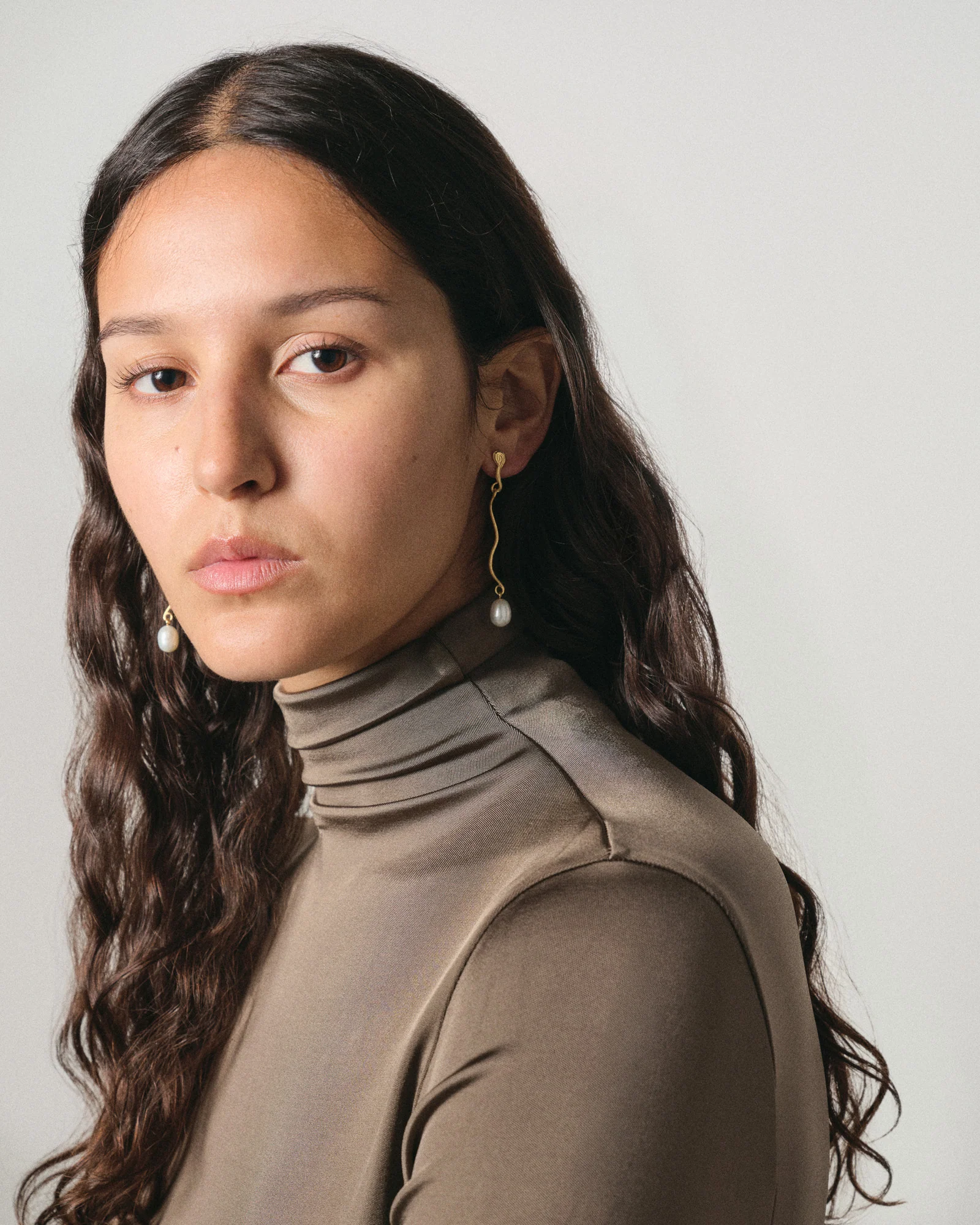 A study in movement and natural form, the Amber Earrings pair a polished metal swirl with a singular baroque pearl. Each pearl is uniquely shaped, suspended for a natural sense of fluidity. Finished with a classic post back.