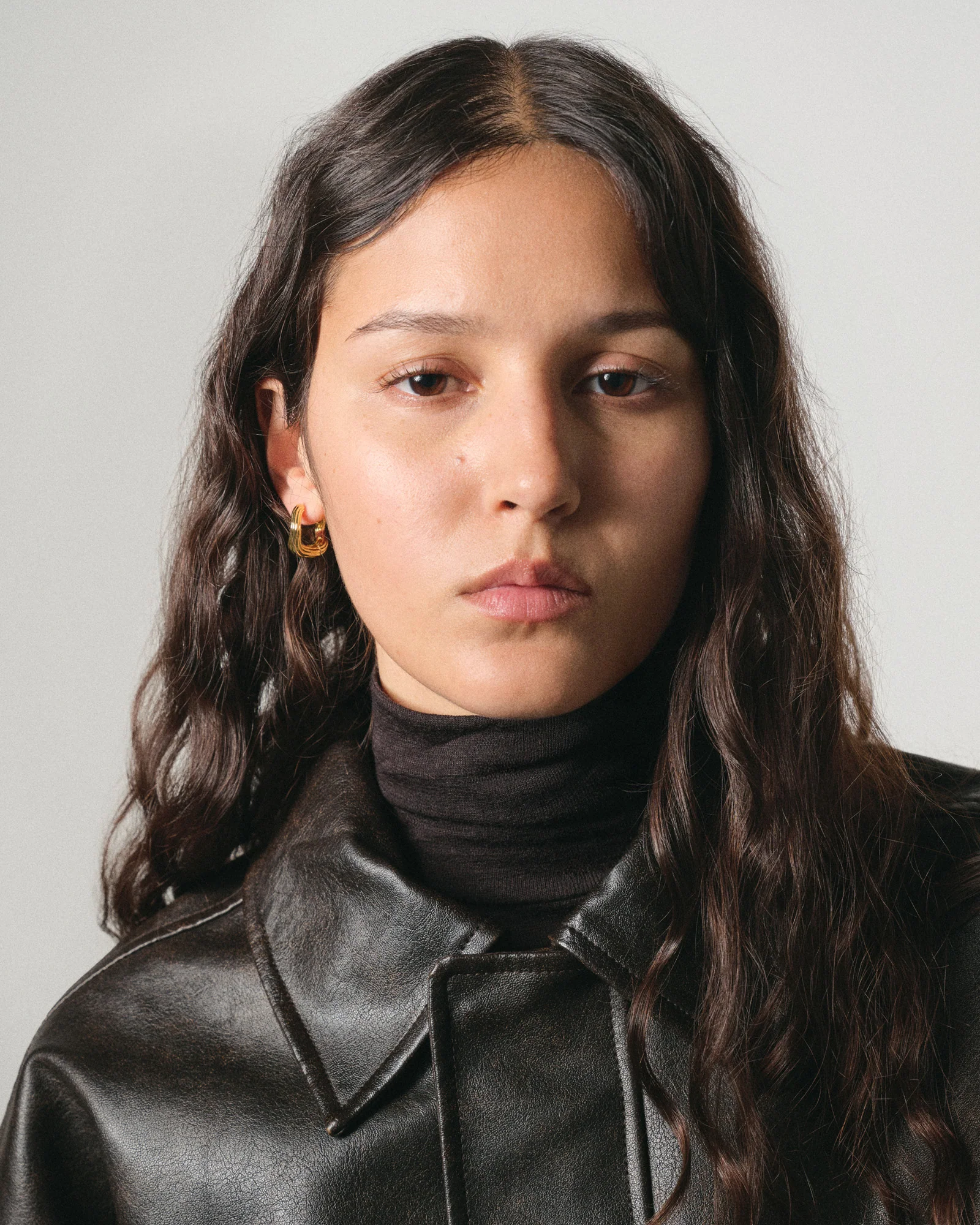 A sculptural miniature of the Simone Hoops, the Pam Hoops capture the same fluid elegance in a more understated form. With softly contoured lines and a subtly textured surface, they evoke quiet movement and refined artistry—perfectly proportioned for everyday wear.